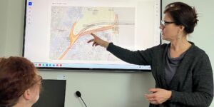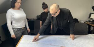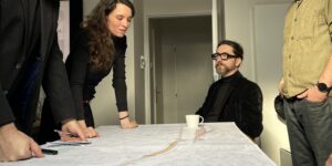 Architekti Žofie Reimanová, Marek Kopec, Petr Tej a Otto Melter představili vedení města, kolegyním z Odboru životního prostředí a městské krajinářce hrubopis studie nábřeží – navázání na lávku Roztoky – …